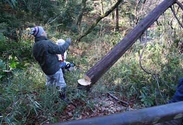 | 長者穴上部の笹刈り。ここのササを切っていることは、生田緑地が綺麗になってきてると何人からも言われ、好評です。 |